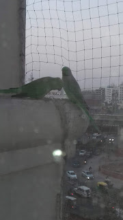 The locally renowned green decorators and their eager crew have arrived, to provide a makeover to a sturdy looking landmark, that's been in your vicinity for many many years. The operation... a stylish draping around, has taken several weeks and the image of a staid, brown, 'just another' of those tree trunks, strongly imprinted in your mind, does change as you take a peek out of your window. A floral pink accessory completes the ensemble, adding a 'flowing with grace' finishing touch.